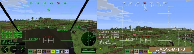 С модом MC Helicopter можно создать целый авиапарк в своем мире майнкрафт. С установкой этого мода будут добавлены различные самолеты и вертолеты. Все машины будут доступны для полетов, а также неплохо вооружены. Теперь вы сможете нападать на своих врагов с воздуха. Летать можно не только днем, но и ночью. Вся техника снабжена приборами ночного виденья. Крафт не очень дорогой, и вы сможете насладится полетами в самом начале игры.